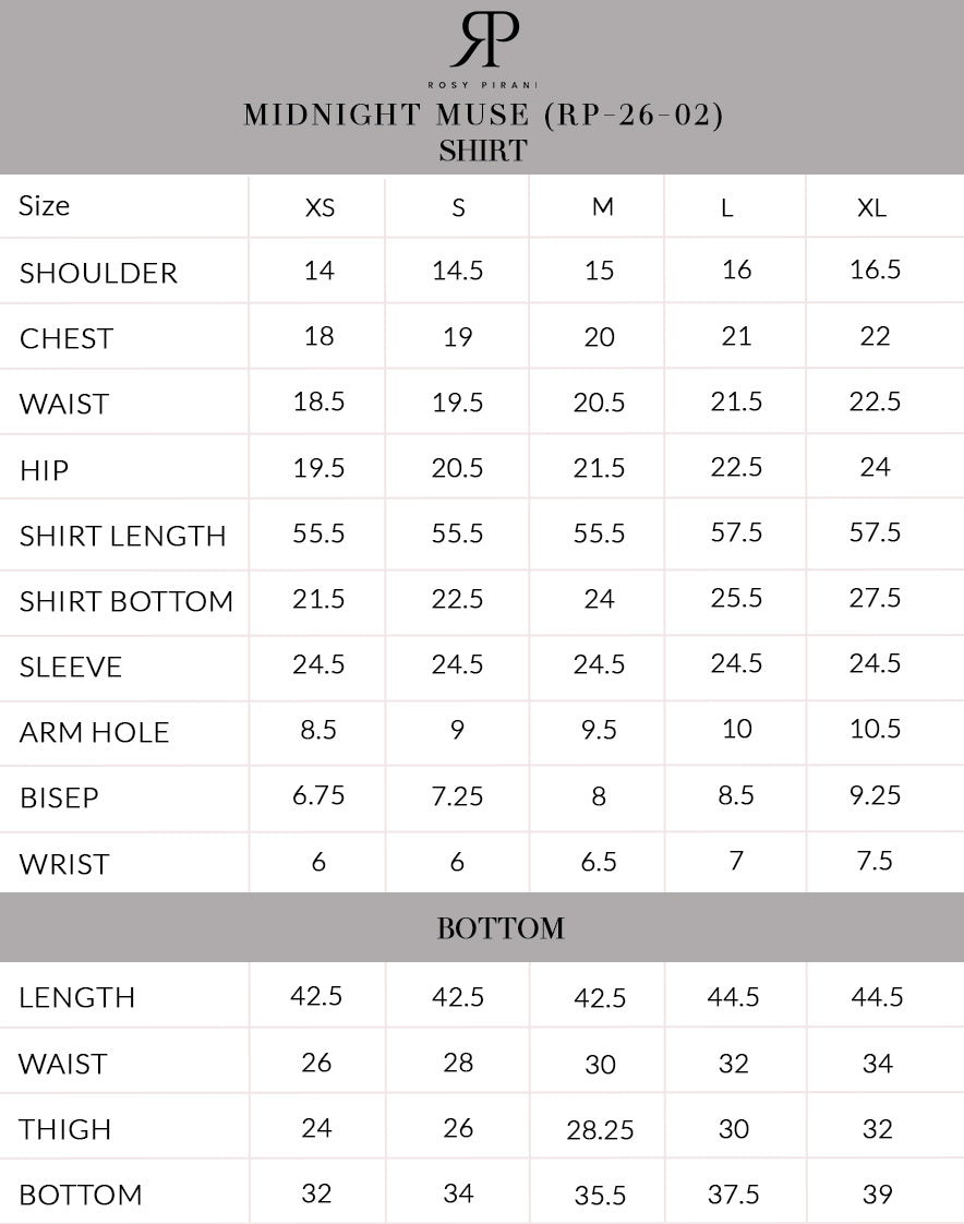Please note that slight variations in color, embroidery, beadwork, texture, and sizing may occur due to lighting, screen settings, and the handcrafted nature of our garments. Length will vary according to the design. Each piece is individually dyed, embroidered, cut, and finished by skilled artisans, making every Rosy Pirani creation uniquely yours. Minor differences in measurements are natural and should be expected as part of artisanal production. These variations are not imperfections, but a hallmark of fine craftsmanship.